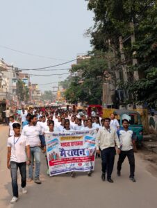 आरा:- आगामी बिहार विधानसभा आम निर्वाचन-2025 के दृष्टिगत जिले में स्वीप कार्यक्रम के तहत मतदाता जागरूकता को बढ़ावा देने हेतु एक भव्य “मतदाता जागरूकता मैराथन” का आयोजन किया गया। यह मैराथन समाहरणालय परिसर, भोजपुर से प्रारंभ होकर पकड़ी चौक होते हुए वीर कुंवर सिंह विश्वविद्यालय, आरा के प्रांगण में सम्पन्न हुई। इस आयोजन का मुख्य उद्देश्य अधिक से अधिक मतदाताओं को आगामी विधानसभा चुनाव में भागीदारी हेतु प्रेरित करना तथा लोकतांत्रिक प्रणाली में नागरिकों की सक्रिय भागीदारी सुनिश्चित करना था।